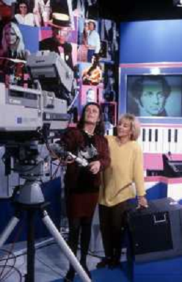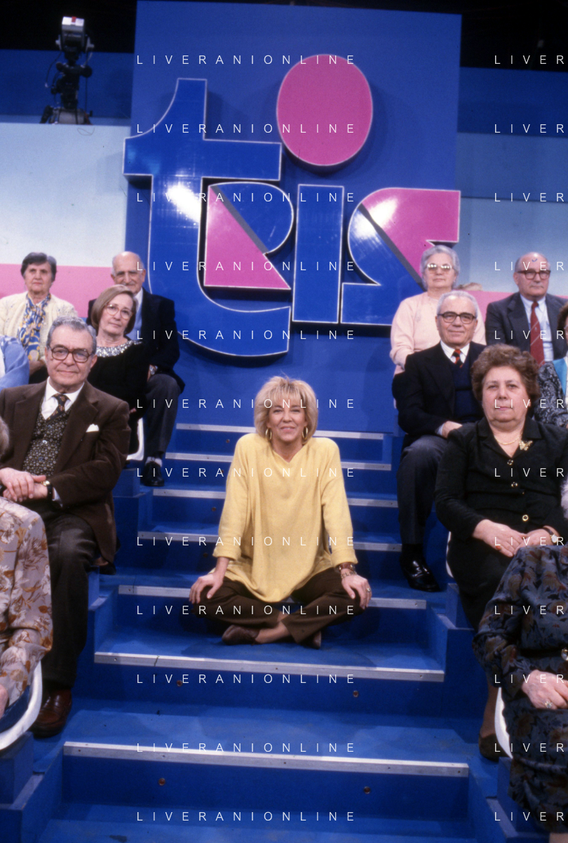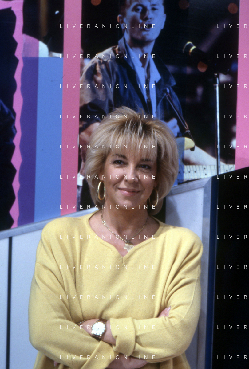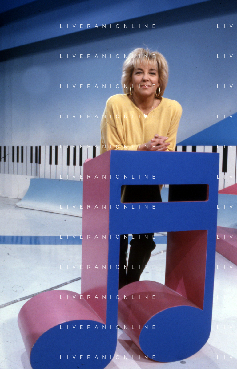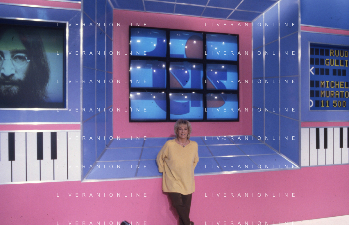 DIAP-RETROSPETTIVA WILMA GOICH CANTANTE NELLA FOTO WILMA GOICH CONDUCE LA TRASMISSIONE TELEVISIVA “TRIS“ ANNO 1990 AG ALDO LIVERANI SAS
