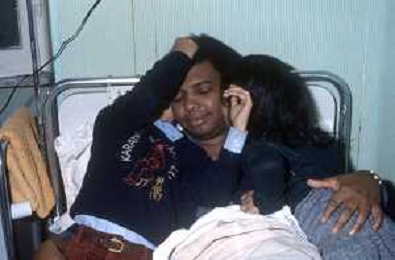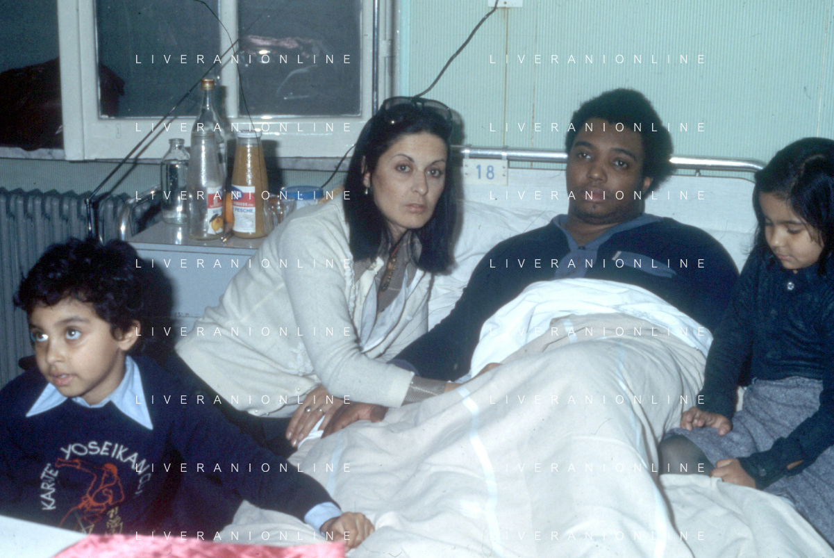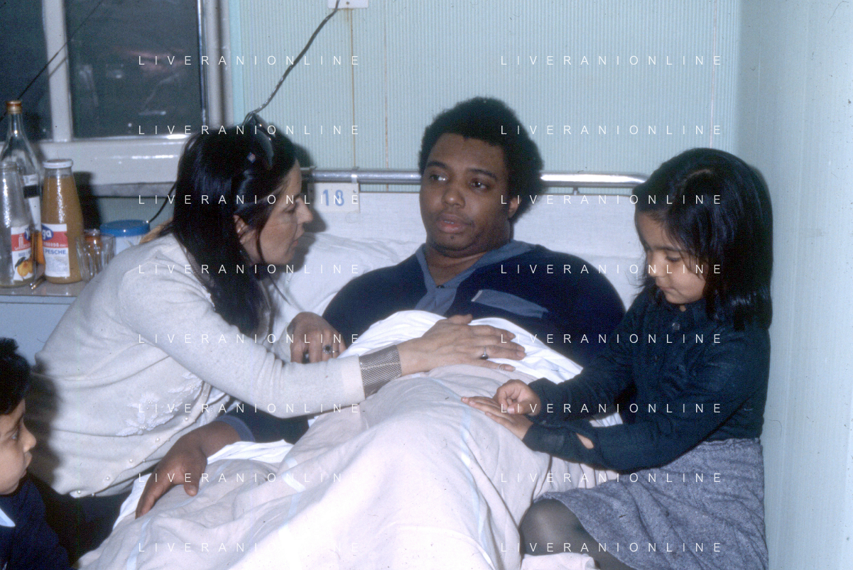 DIAP-RETROSPETTIVA WESS JOHNSON PSEUDONIMO WESLEY JOHNSON CANTANTE NELLA FOTO WESS JOHNSON IN OSPEDALE A ROMA CON LA FAMIGLIA FOTO EDGARDO DELLA SCORCIOSA-AG ALDO LIVERANI SAS