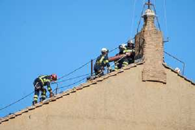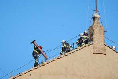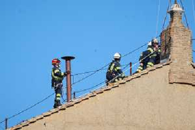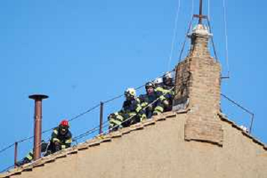 Roma - 02 Maggio 2025 I Vigili del Fuoco installano il Comignol