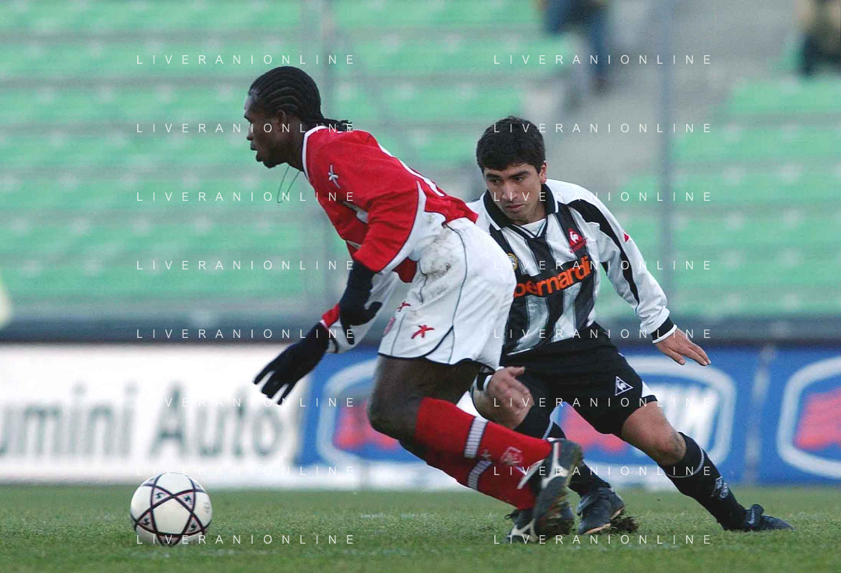 DIG- UDINESE - PERUGIA CAMPIONATO CALCIO SERIE A 12 GENNAIO 2003 - RISULTATO 0-0 NELLA FOTO MARCO DI LORETO E ALBERTO VALENTIM AGENZIA ALDO LIVERANI SAS