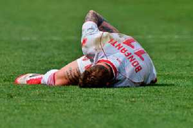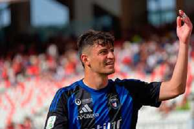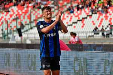 TVEM May 04, 2025 Bari, Italy - SSC Bari vs Pisa Sporting Club - Italian soccer serie B 2024/25 - San Nicola Stadium. In the pic: Giovanni Bonfanti of Pisa applauds fans ©TVEM Emmanuele Mastrodonato - AGENZIA ALDO LIVERANI SAS