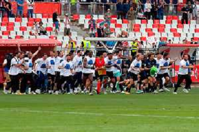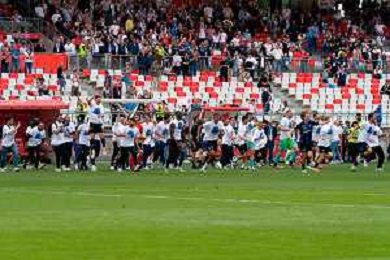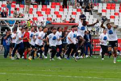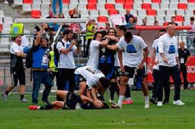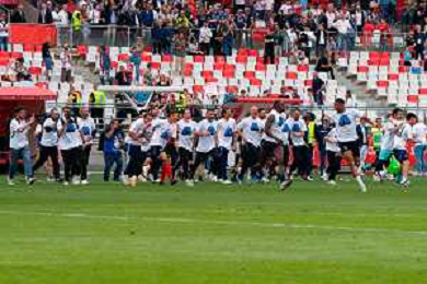 TVEM May 04, 2025 Bari, Italy - SSC Bari vs Pisa Sporting Club - Italian soccer serie B 2024/25 - San Nicola Stadium. In the pic: Pisa players celebrate promotion to Serie A ©TVEM Emmanuele Mastrodonato - AGENZIA ALDO LIVERANI SAS
