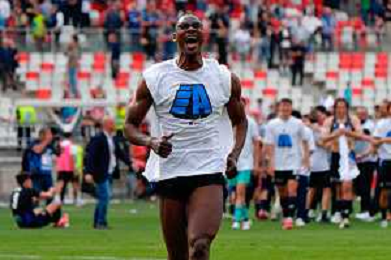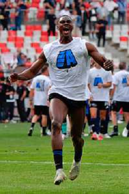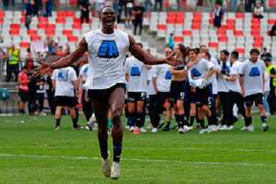 TVEM May 04, 2025 Bari, Italy - SSC Bari vs Pisa Sporting Club - Italian soccer serie B 2024/25 - San Nicola Stadium. In the pic: Idrissa Toure’ of Pisa celebrate promotion to Serie A ©TVEM Emmanuele Mastrodonato - AGENZIA ALDO LIVERANI SAS