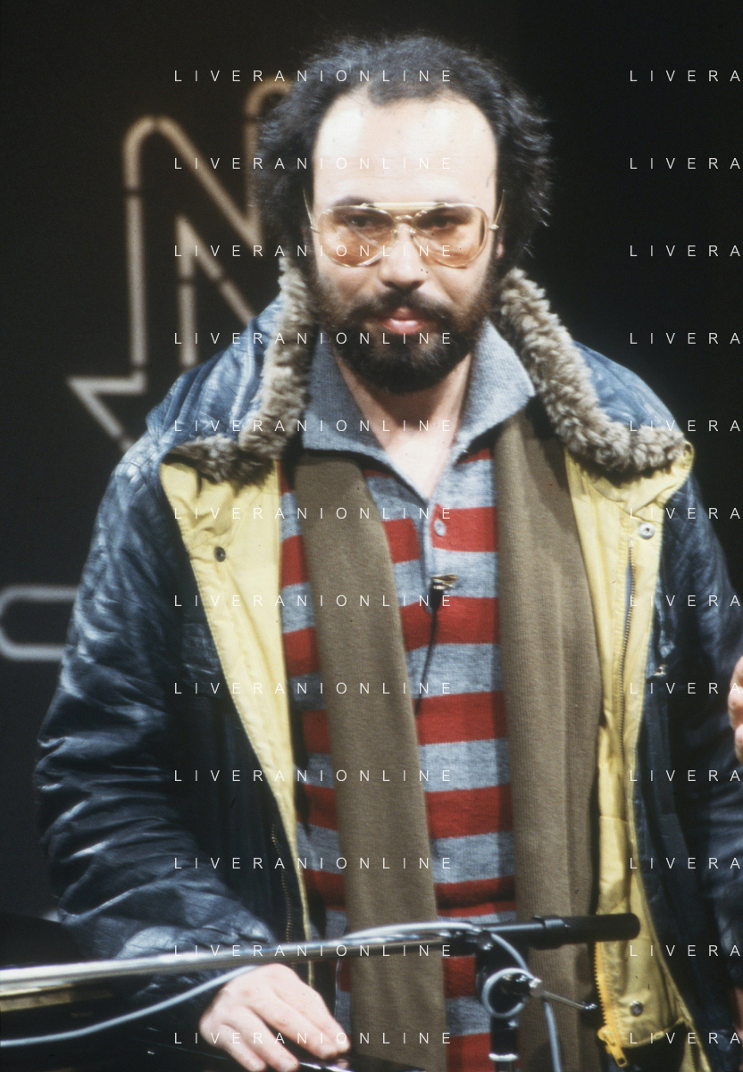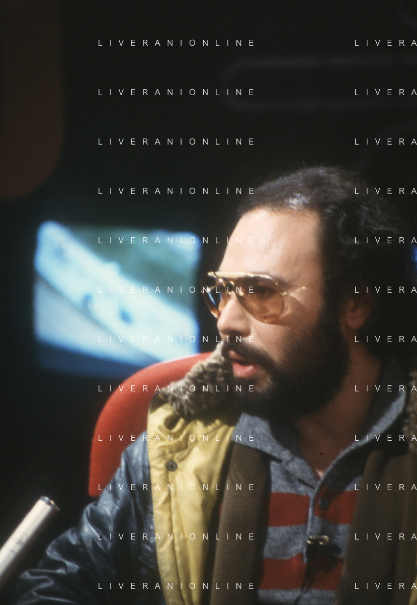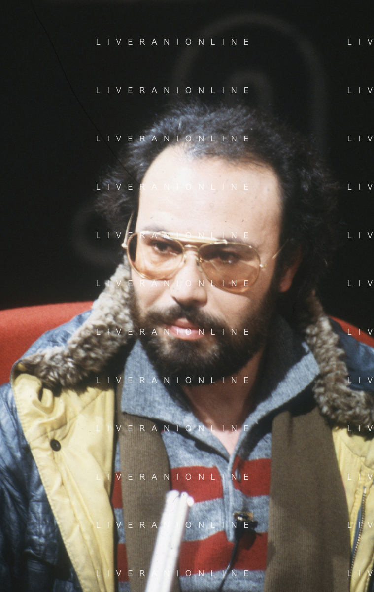 DIAP-RETROSPETTIVA ANTONELLO VENDITTI CANTANTE NELLA FOTO ANTONELLO VENDITTI OSPITE DELLA TRASMISSIONE TELEVISIVA “BLITZ“ CONDOTTA DA GIANNI MINA' ANNI 80 FOTO MARIO DOTTI-AG ALDO LIVERANI SAS
