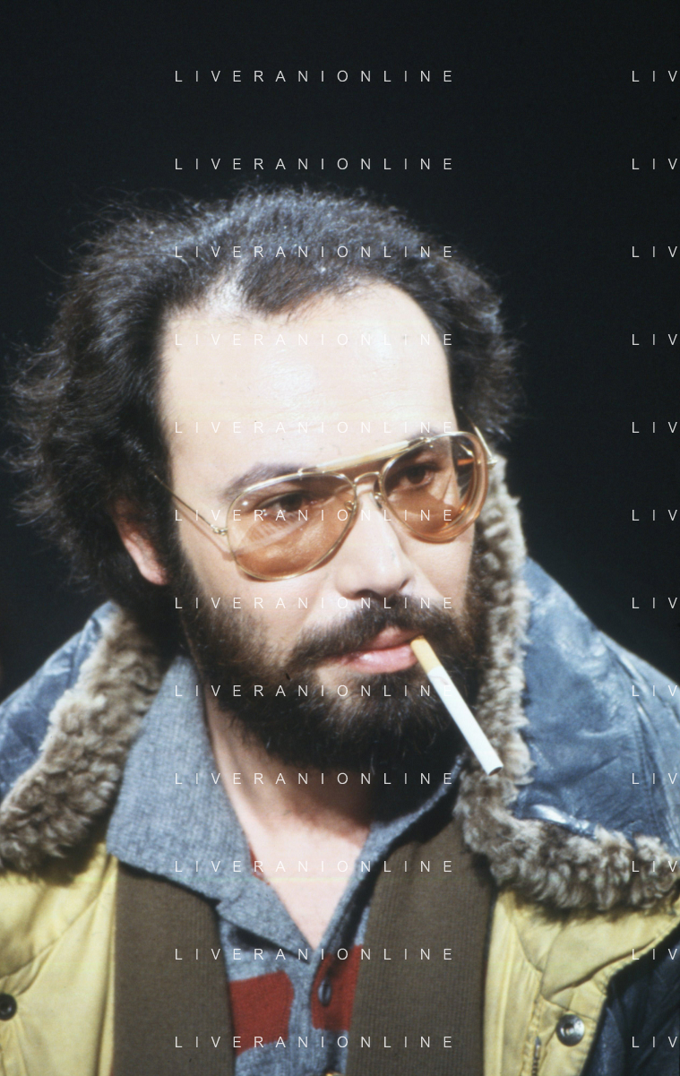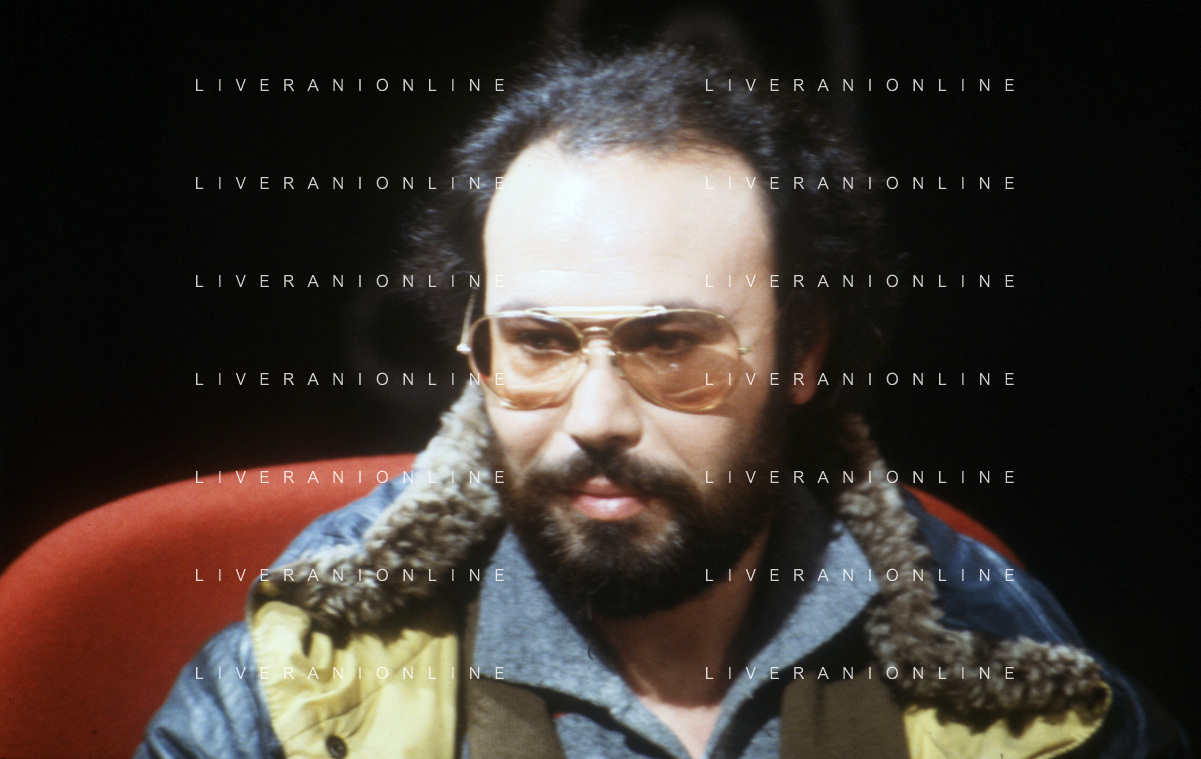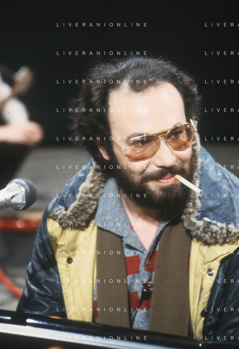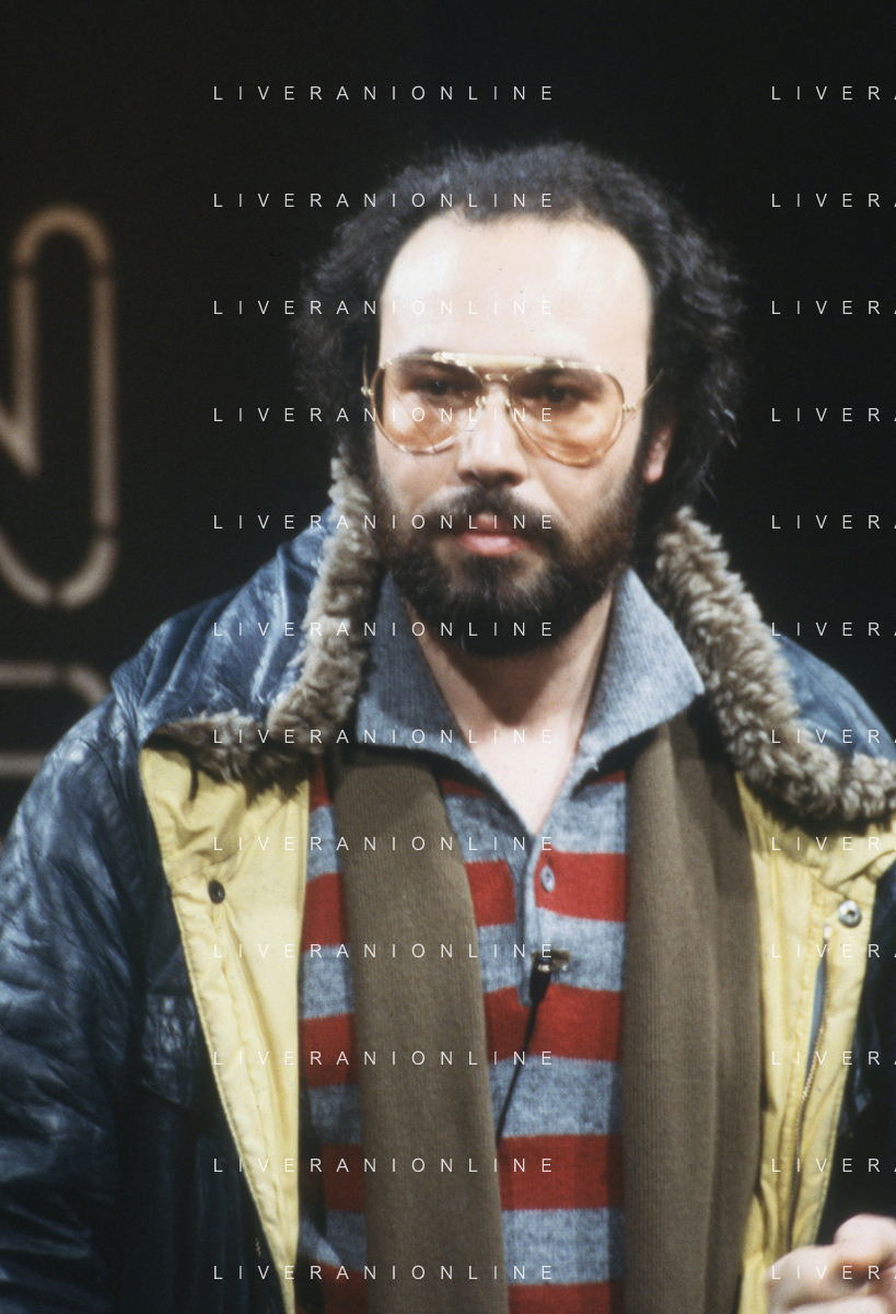 DIAP-RETROSPETTIVA ANTONELLO VENDITTI CANTANTE NELLA FOTO ANTONELLO VENDITTI OSPITE DELLA TRASMISSIONE TELEVISIVA “BLITZ“ CONDOTTA DA GIANNI MINA' ANNI 80 FOTO MARIO DOTTI-AG ALDO LIVERANI SAS