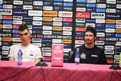 08-05-2025 Vigilia Giro D'italia 2025; 2025, Uae Team Emirates - Xrg; 2025, Red Bull - Bora Hansgrohe; Ayuso Pesquera, Juan; Roglic, Primoz; Tirana; ©SIROTTI - AGENZIA ALDO LIVERANI SAS