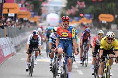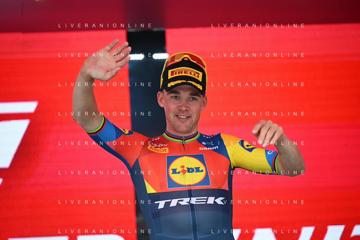 09-05-2025 Giro D'italia; Tappa 01 Durres - Tirana; 2025, Lidl - Trek; Pedersen, Mads; Lappartient, David; Tirana; ©SIROTTI - AGENZIA ALDO LIVERANI SAS