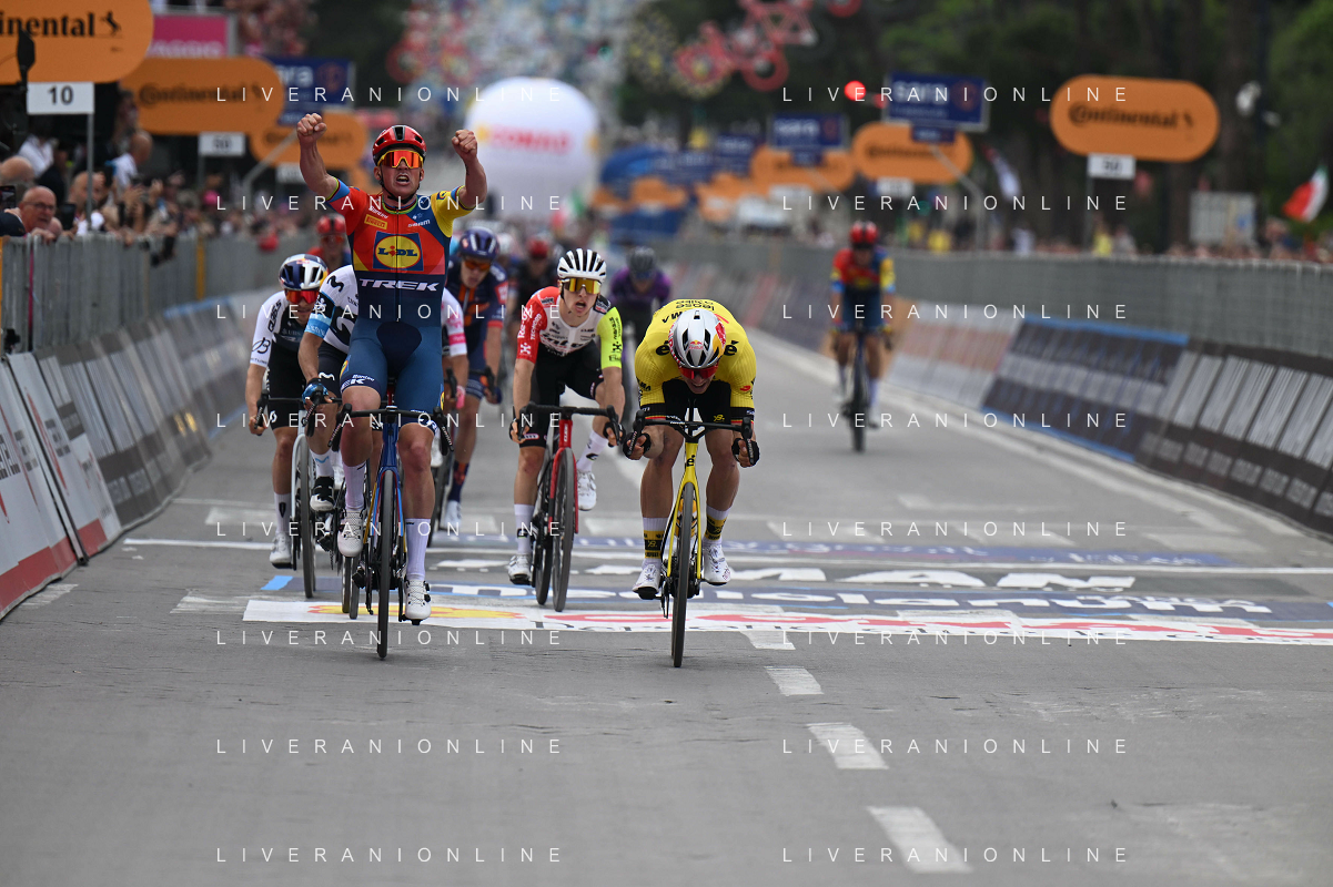 09-05-2025 Giro D'italia; Tappa 01 Durres - Tirana; 2025, Lidl - Trek; 2025, Visma - Lease A Bike; Pedersen, Mads; Van Aert, Wout; Tirana; ©SIROTTI - AGENZIA ALDO LIVERANI SAS