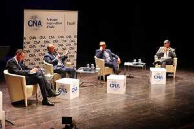 IMOLA 09 05 2025 CONVEGNO LEGALITA' E IMPRESE NELL'ERA DIGITALE OSPITE NICOLA GRATTERI PROCURATORE DELLA REPPUBLICA PRESSO TRIBUNALE DI NAPOLI NELLA FOTO DA SINISTRA LUCA PALLADINO PRESIDENTE CNA IMOLA,NICOLA GRATTERI PROCURATORE DELLA REPPUBLICA PRESSO TRIBUNALE DI NAPOLI,OTELLO GREGORINI SEGRETARIO GENERALE NAZIONALE CNA E GIORNALISTA VALERIO BARONCINI ©SANNA - AGENZIA ALDO LIVERANI SAS
