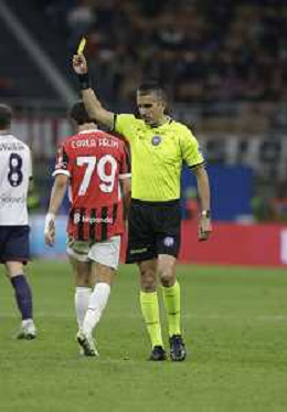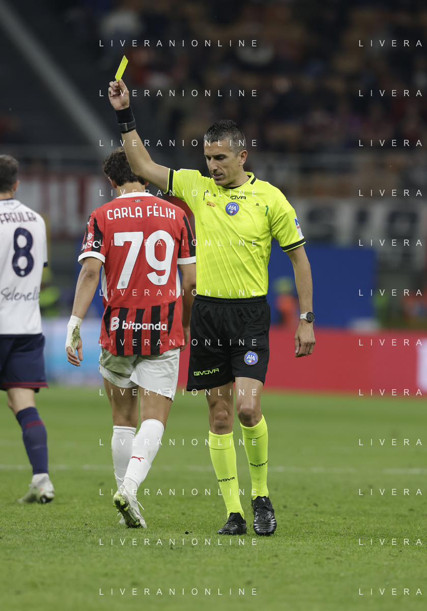 ARBITRO LIVIO MARINELLI CARTELLINO GIALLO AMMONIZIONE -MILAN - BOLOGNA Campionato Calcio Serie A 09.05.2025 ©PAOLO GIAMPIETRI - AGENZIA ALDO LIVERANI SAS
