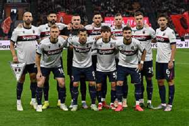 Milan vs Bologna nella foto formazione Bologna, in piedi da SX Lorenzo De Silvestri, Martin Erlic, Lukasz Skorupski, Charalampos Lykogiannis, Sam Beukema, Thijs Dallinga e Nikola Moro; in basso da SX Tommaso Pobega, Remo Freuler, Benjamin Dominguez e Riccardo Orsolini Milano 09-05-2025 Stadio Giuseppe Meazza - San Siro Campionato Serie A Enilive - 36a giornata foto Roberto Garavaglia/Agenzia Aldo Liverani sas