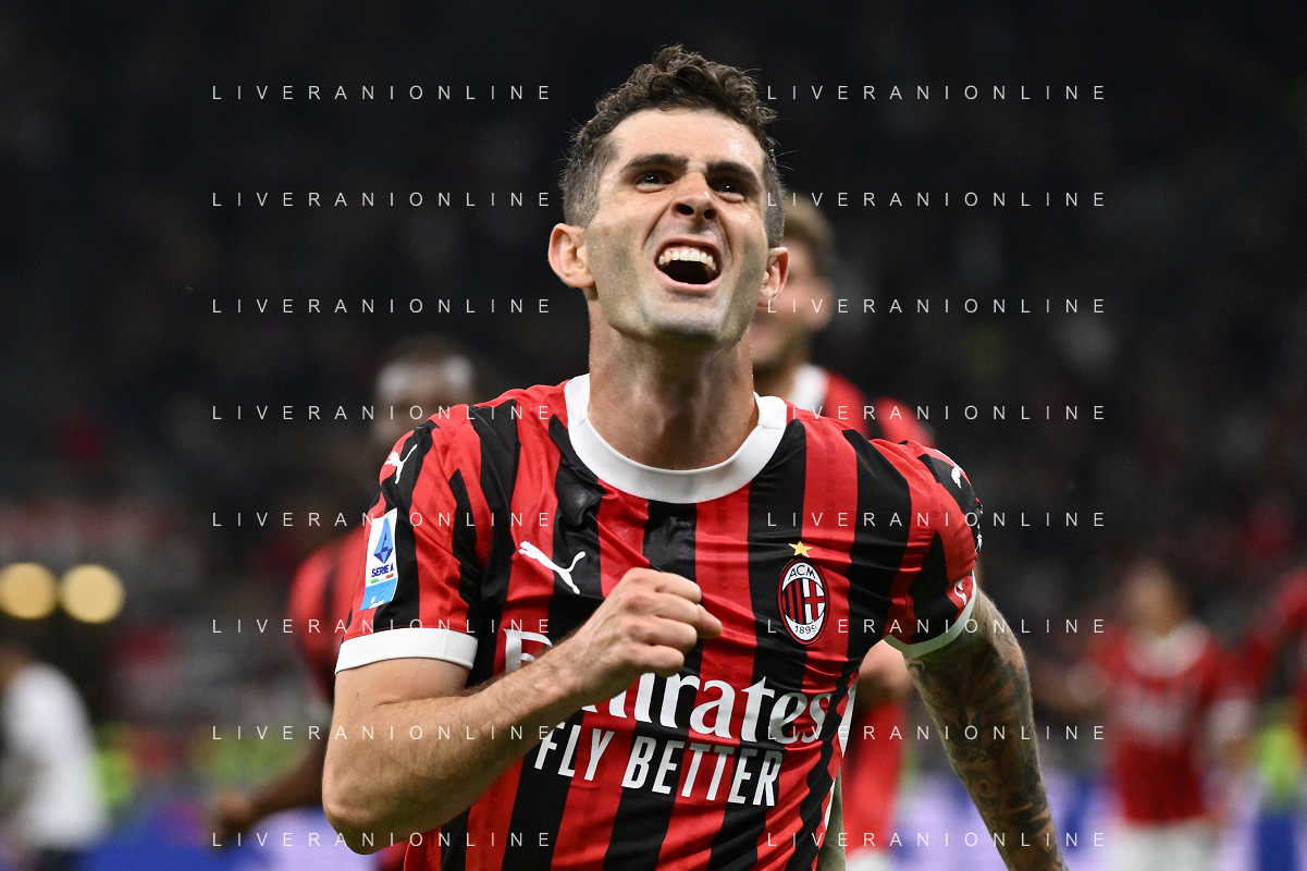 Milan vs Bologna nella foto Christian Mate Pulisic (Milan) Milano 09-05-2025 Stadio Giuseppe Meazza - San Siro Campionato Serie A Enilive - 36a giornata foto Roberto Garavaglia/Agenzia Aldo Liverani sas