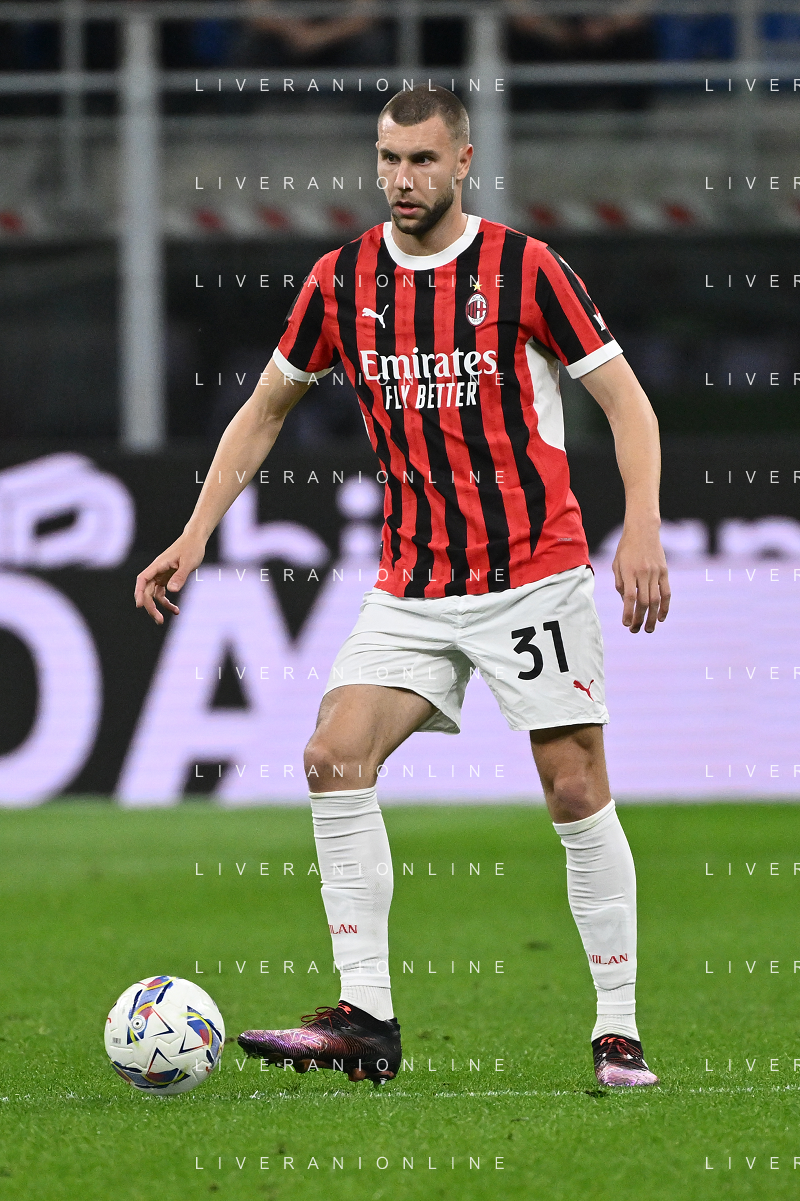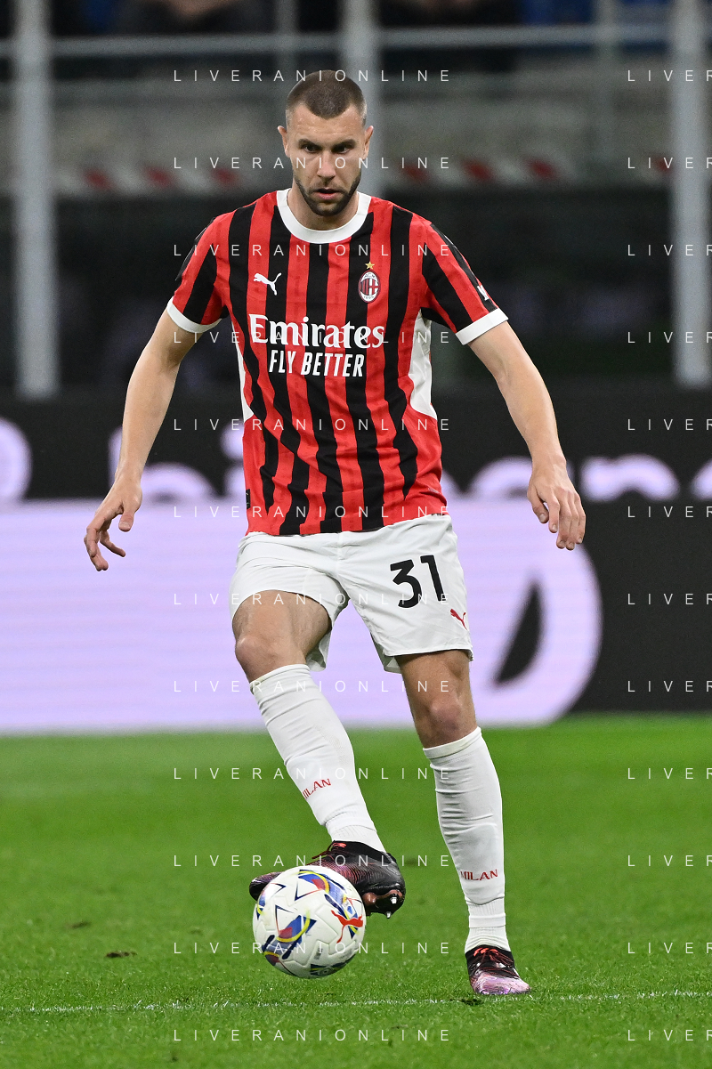 Milan vs Bologna nella foto Strahinja Pavlovic (Milan) Milano 09-05-2025 Stadio Giuseppe Meazza - San Siro Campionato Serie A Enilive - 36a giornata foto Roberto Garavaglia/Agenzia Aldo Liverani sas