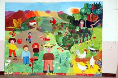 IMOLA FRAZ.SPAZZATE SASSATELLI 10 05 2025 NELLA FOTO SCUOLA DI SPAZZATE SASSATELLI MURALES IN UNA CLASSE FOTO GIANNI SANNA-AG ALDO LIVERANI SAS