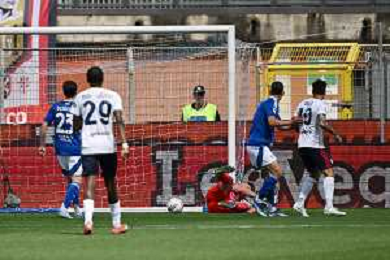 TVRG Como vs Cagliari nella foto il tiro di Nichel Ndary Adopo (Cagliari) termina in rete per il gol dell'1 a 0 Como 10-05-2025 Stadio Giuseppe Sinigaglia Campionato Serie A Enilive - 36a giornata foto Roberto Garavaglia/Agenzia Aldo Liverani sas