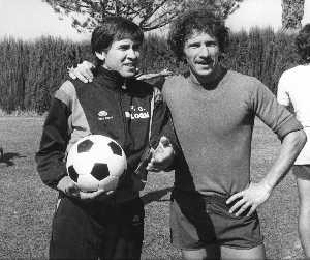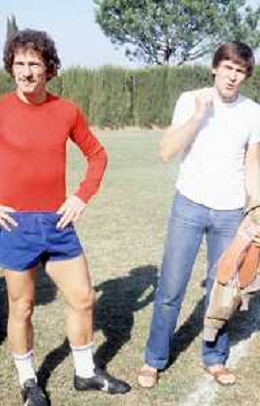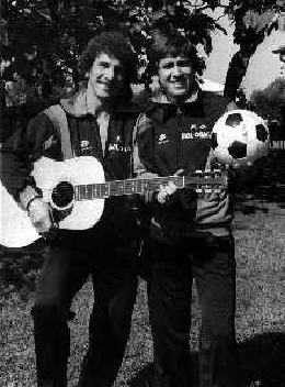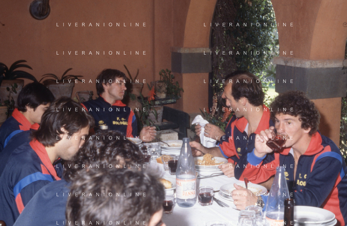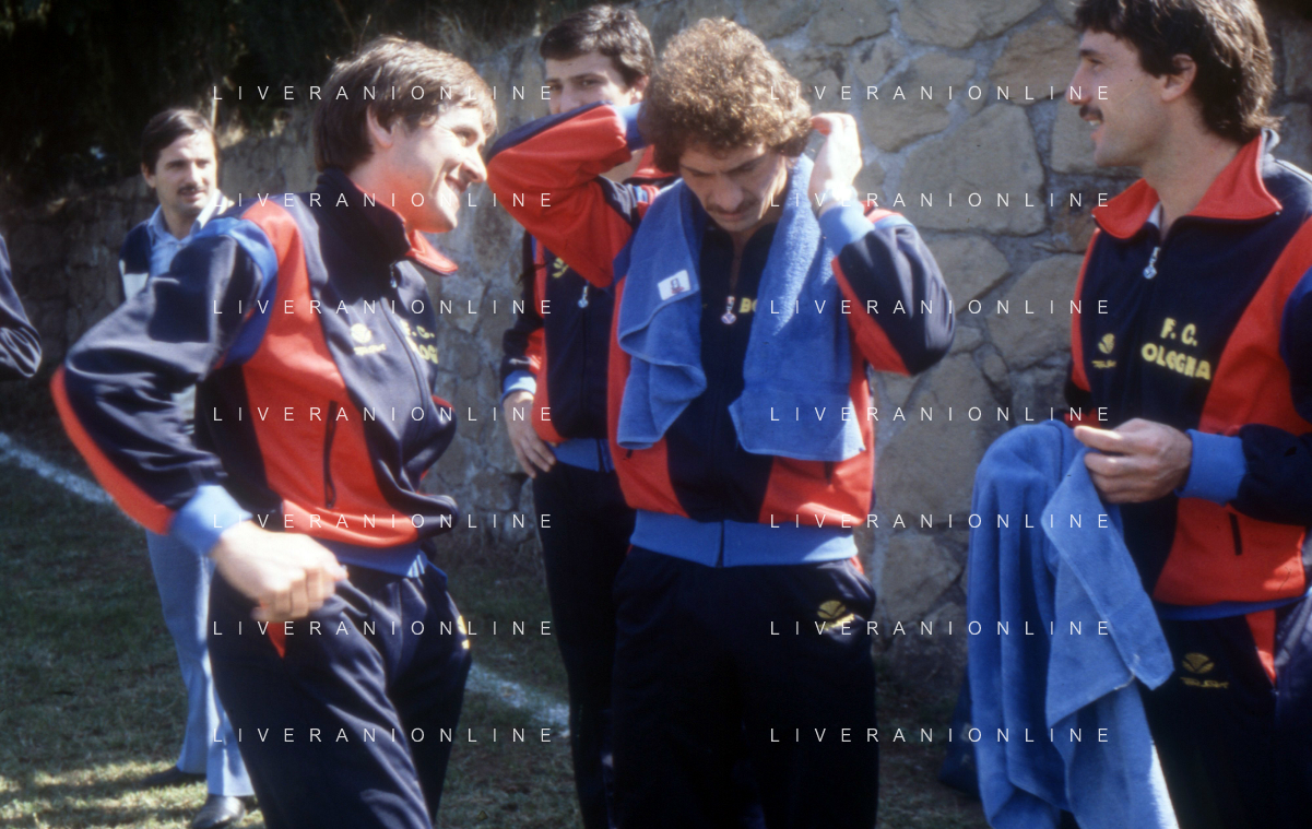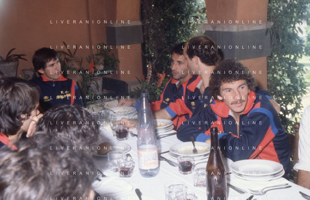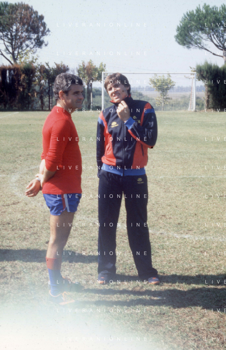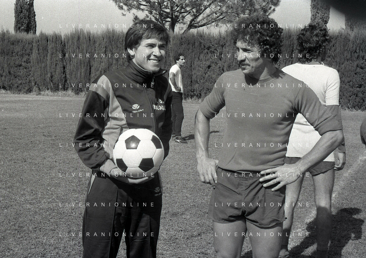 NEG-RETROSPETTIVA GIANNI MORANDI CANTANTE NELLA FOTO GIANNI MORANDI CON GIUSEPPE SAVOLDI GIOCATORI DEL BOLOGNA CALCIO NELL'ANNO 1979 AG ALDO LIVERANI SAS