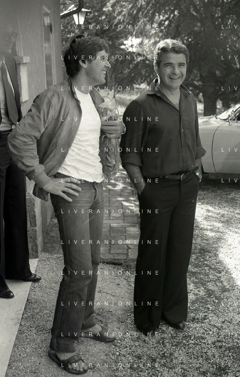 DIAP-RETROSPETTIVA GIANNI MORANDI CANTANTE NELLA FOTO GIANNI MORANDI A BOLOGNA IN VISITA AL FC BOLOGNA CALCIO NELL'ANNO 1979 CON GIUSEPPE ZINETTI AG ALDO LIVERANI SAS