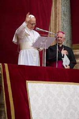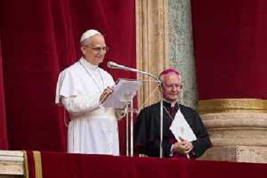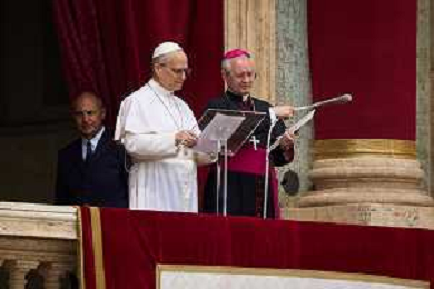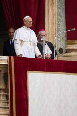 Città del Vaticano - 11 Maggio 2025 Papa Leone XIV appare al balcone centrale della Basilica di San Pietro per la sua prima benedizione domenicale dopo la sua elezione, in Piazza San Pietro in Vaticano Nella Foto: Papa Leone XIV Andrea Bracaglia - AGENZIA ALDO LIVERANI SAS