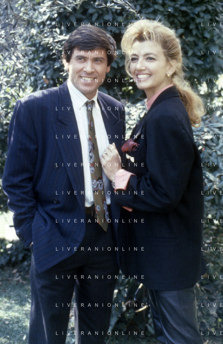 DIAP-RETROSPETTIVA GIANNI MORANDI CANTANTE NELLA FOTO GIANNI MORANDI NELL'ANNO 1987 CON GABRIELLA CARLUCCI A ROMA FOTO EDGARDO DELLA SCORCIOSA-AG ALDO LIVERANI SAS