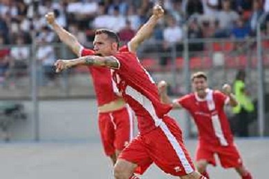 TVRG Correggese vs Nibbiano e Valtidone nella foto giocatori Correggese esultanza dopo il gol del 2 a 1 Fiorenzuola d'Arda (PC) 11-05-2025 Stadio velodromo Attilio Pavesi Campionato Eccellenza Emilia Romagna spareggio per la promozione in Serie D foto Roberto Garavaglia/Agenzia Aldo Liverani sas