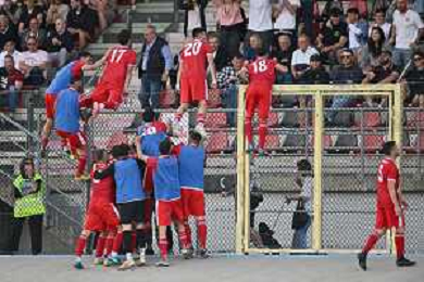 TVRG Correggese vs Nibbiano e Valtidone nella foto giocatori Nibbiano e Valtidone esultanza dopo il gol dell'1 a 0 Fiorenzuola d'Arda (PC) 11-05-2025 Stadio velodromo Attilio Pavesi Campionato Eccellenza Emilia Romagna spareggio per la promozione in Serie D foto Roberto Garavaglia/Agenzia Aldo Liverani sas