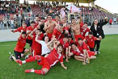TVRG Correggese vs Nibbiano e Valtidone nella foto giocatori Correggese esultanza a fine partita Fiorenzuola d'Arda (PC) 11-05-2025 Stadio velodromo Attilio Pavesi Campionato Eccellenza Emilia Romagna spareggio per la promozione in Serie D foto Roberto Garavaglia/Agenzia Aldo Liverani sas