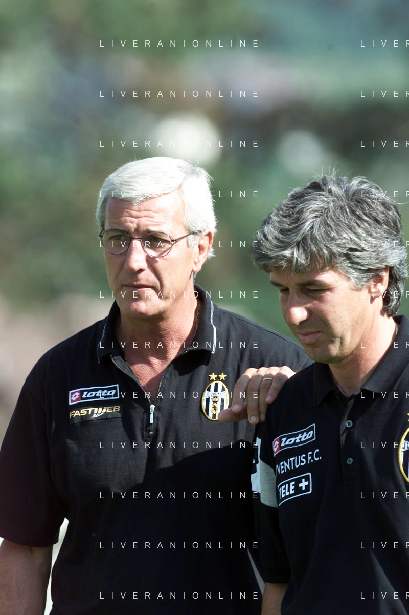 DIG- JUVENTUS vs JUVENTUS PRIMAVERA AMICHEVOLE PRECAMPIONATO 2001-2002 VILLAR PEROSA 12 AGOSTO 2001 NELLA FOTO MARCELLO LIPPI ALLENATORE CON GIAN PIERO GASPERINI AGENZIA ALDO LIVERANI SAS
