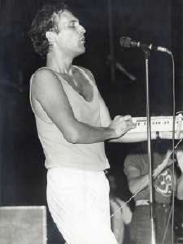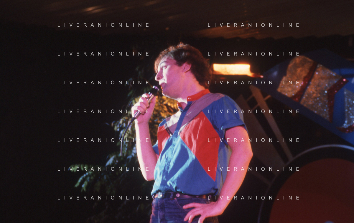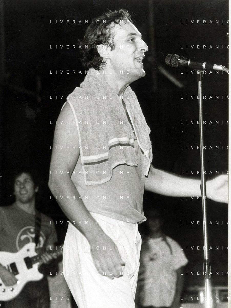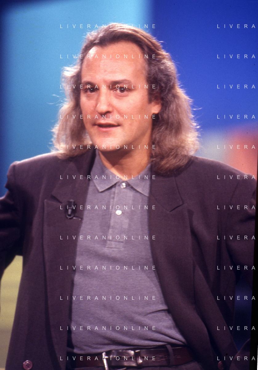 DIAP-RETROSPETTIVA EUGENIO FINARDI CANTANTE NELLA FOTO EUGENIO FINARDI OSPITE DEL PROGRAMMA TELEVISIVO “TELEMIKE“ AG ALDO LIVERANI SAS