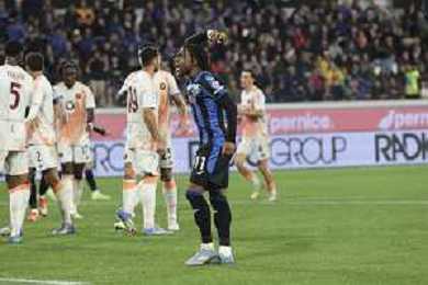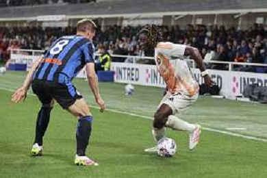 Ademola Lookman of Atalanta BC play the ball during Atalanta BC vs AS Roma, 36° Serie A Enilive 2024-25 game at Gewiss stadium in Bergamo (BG), Italy, on May 12, 2025. (Photo by Davide Casentini)- AGENZIA ALDO LIVERANI SAS