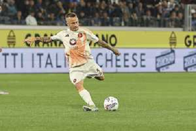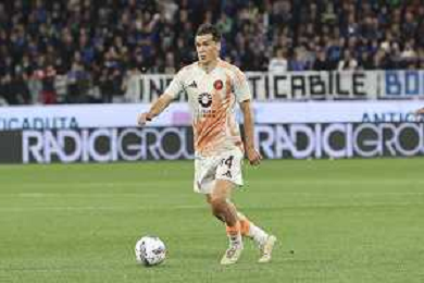Angelino of AS Roma play the ball during Atalanta BC vs AS Roma, 36° Serie A Enilive 2024-25 game at Gewiss stadium in Bergamo (BG), Italy, on May 12, 2025. (Photo by Davide Casentini)- AGENZIA ALDO LIVERANI SAS