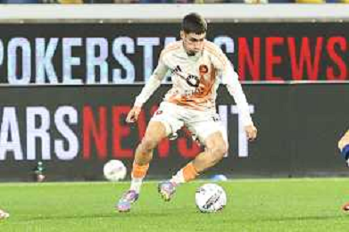 Matías Soule’ of AS Roma expresses disappointment during Atalanta BC vs AS Roma, 36° Serie A Enilive 2024-25 game at Gewiss stadium in Bergamo (BG), Italy, on May 12, 2025. (Photo by Davide Casentini)- AGENZIA ALDO LIVERANI SAS