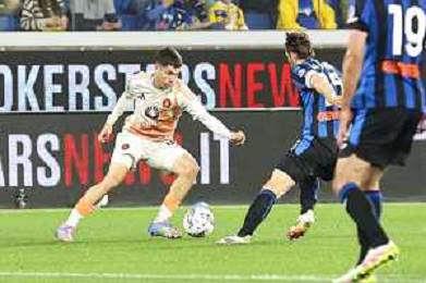 Eldor Shomurodov of AS Roma play the ball during Atalanta BC vs AS Roma, 36° Serie A Enilive 2024-25 game at Gewiss stadium in Bergamo (BG), Italy, on May 12, 2025. (Photo by Davide Casentini)- AGENZIA ALDO LIVERANI SAS