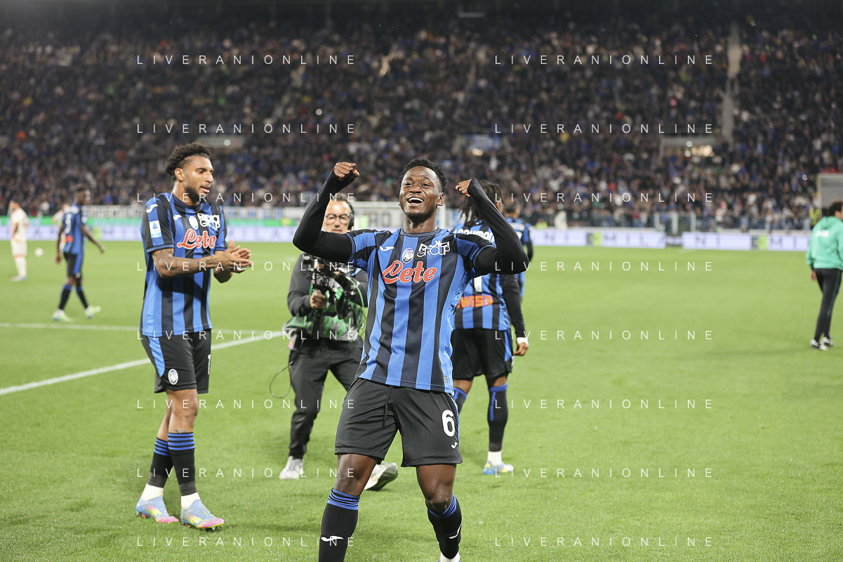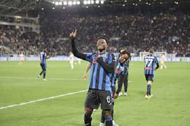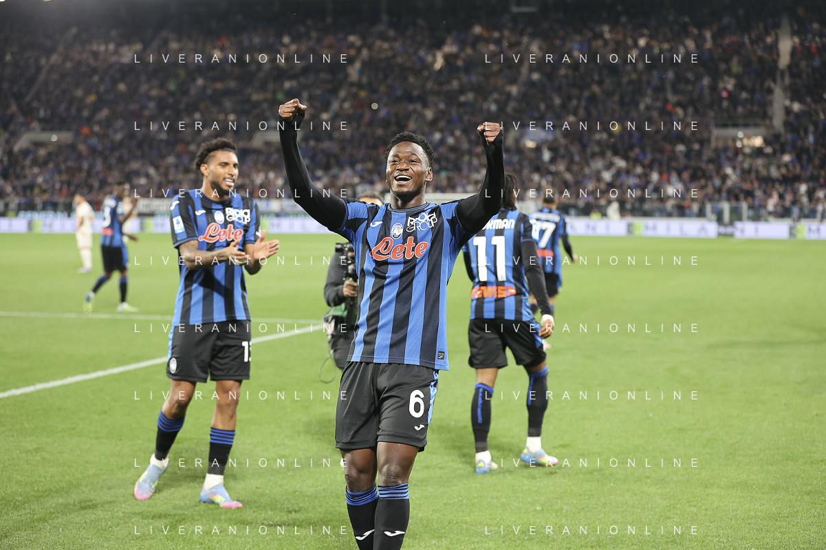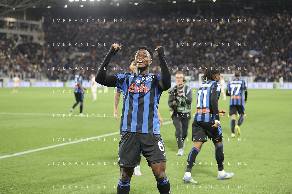 Ibrahim Sulemana of Atalanta BC celebrates after scoring first goal in Serie A during Atalanta BC vs AS Roma, 36° Serie A Enilive 2024-25 game at Gewiss stadium in Bergamo (BG), Italy, on May 12, 2025. (Photo by Davide Casentini)- AGENZIA ALDO LIVERANI SAS