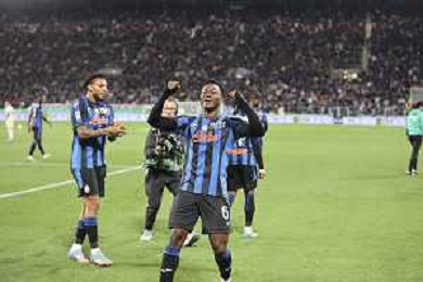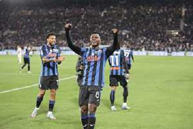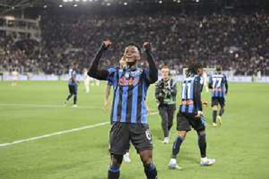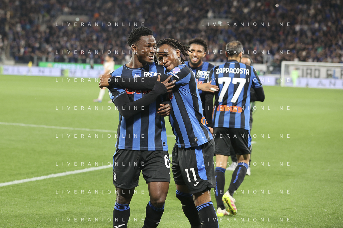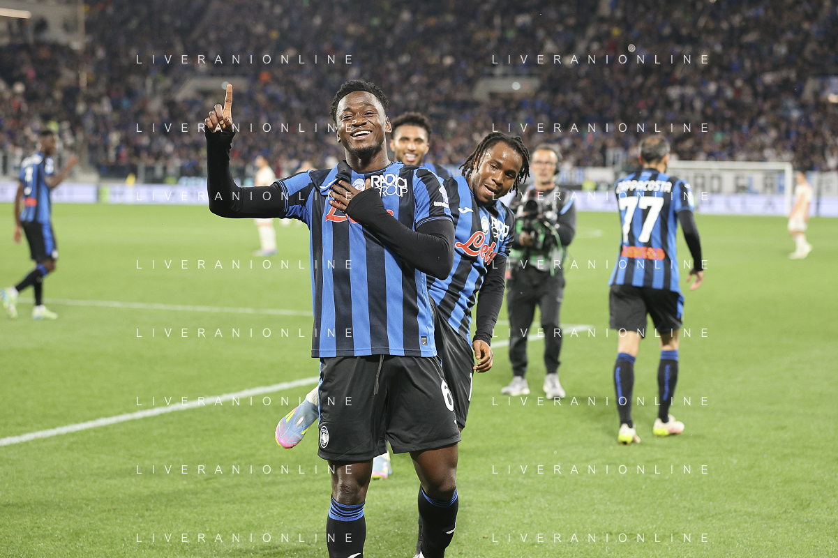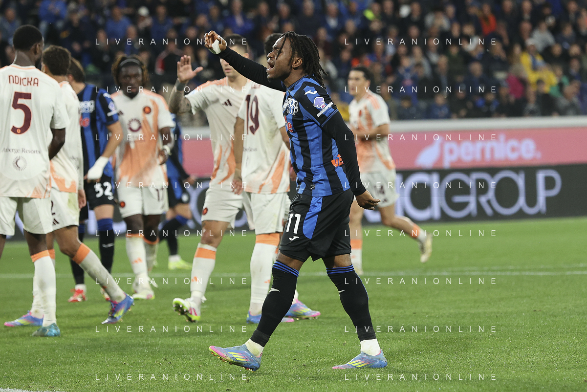 Ademola Lookman of Atalanta BC celebrate during Atalanta BC vs AS Roma, 36° Serie A Enilive 2024-25 game at Gewiss stadium in Bergamo (BG), Italy, on May 12, 2025. (Photo by Davide Casentini)- AGENZIA ALDO LIVERANI SAS