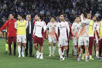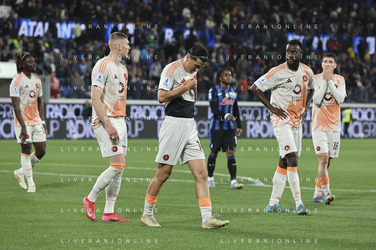 Roma players expresses disappointment during Atalanta BC vs AS Roma, 36° Serie A Enilive 2024-25 game at Gewiss stadium in Bergamo (BG), Italy, on May 12, 2025. (Photo by Davide Casentini)- AGENZIA ALDO LIVERANI SAS