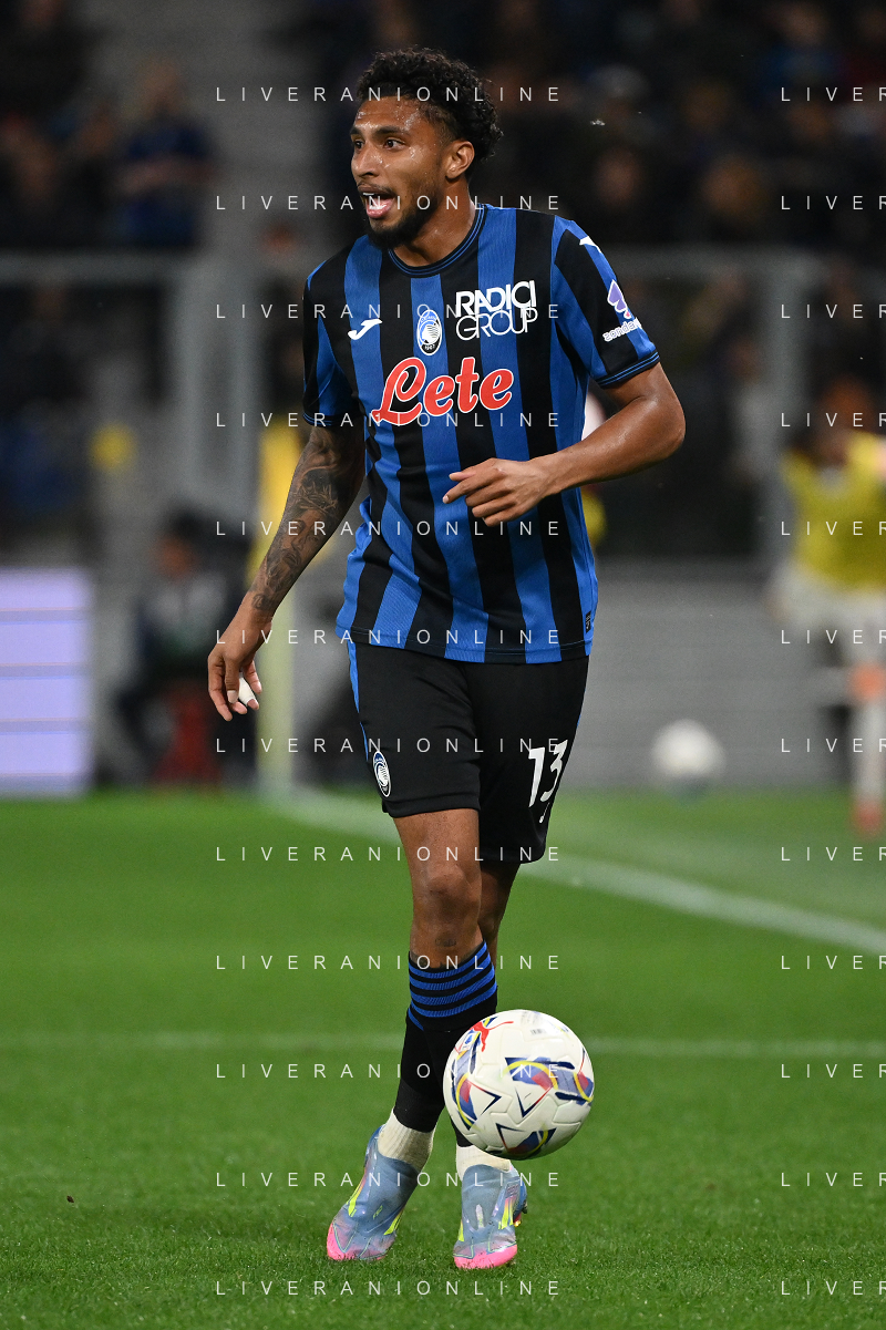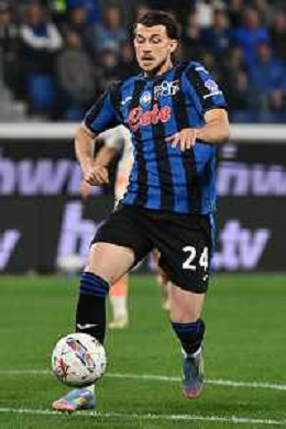 Berat Djimsiti of Atalanta BC play the ball during Atalanta BC vs AS Roma, 36° Serie A Enilive 2024-25 game at Gewiss stadium in Bergamo (BG), Italy, on May 12, 2025. (Photo by Davide Casentini)- AGENZIA ALDO LIVERANI SAS