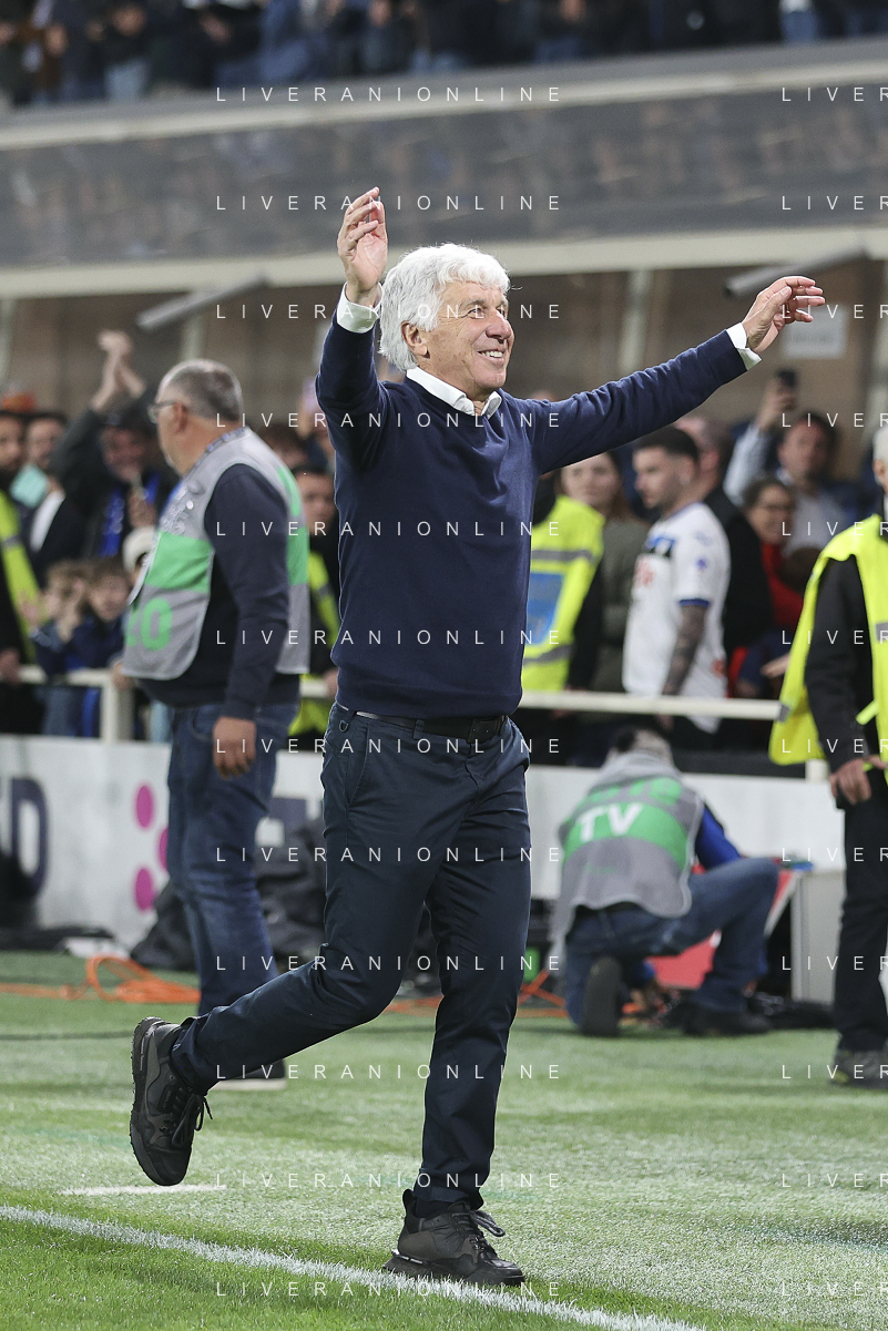 Gian Piero Gasperini Head Coach of Atalanta BC celebrate the victory at the end of Atalanta BC vs AS Roma, 36° Serie A Enilive 2024-25 game at Gewiss stadium in Bergamo (BG), Italy, on May 12, 2025. (Photo by Davide Casentini)- AGENZIA ALDO LIVERANI SAS