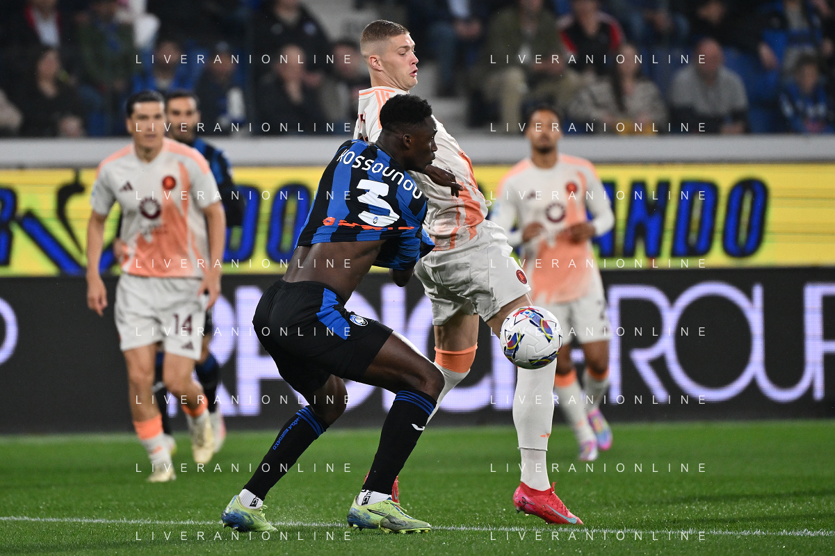 TVRG Atalanta vs Roma nella foto Odilon Kossounou (Atalanta) e Artem Dovbyk (Roma) Bergamo 12-05-2025 Gewiss Stadium Campionato Serie A Enilive - 36a giornata foto Roberto Garavaglia/Agenzia Aldo Liverani sas