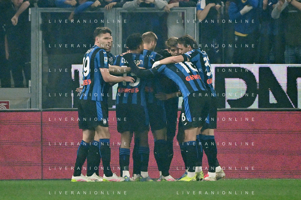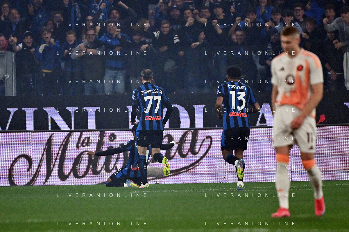 TVRG Atalanta vs Roma nella foto giocatori Atalanta esultanza dopo il gol dell'1 a 0 Bergamo 12-05-2025 Gewiss Stadium Campionato Serie A Enilive - 36a giornata foto Roberto Garavaglia/Agenzia Aldo Liverani sas