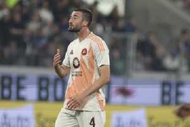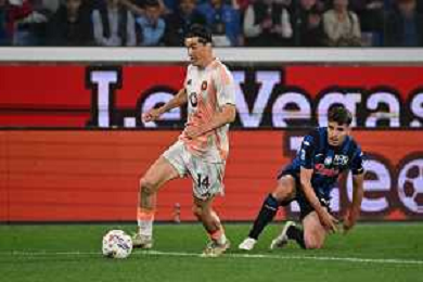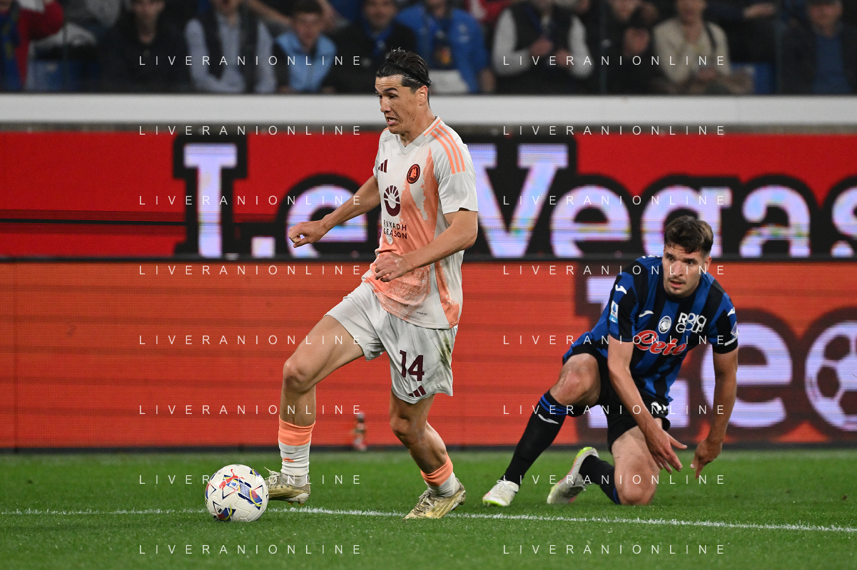 Zeki Celik of AS Roma play the ball during Atalanta BC vs AS Roma, 36° Serie A Enilive 2024-25 game at Gewiss stadium in Bergamo (BG), Italy, on May 12, 2025. (Photo by Davide Casentini)- AGENZIA ALDO LIVERANI SAS