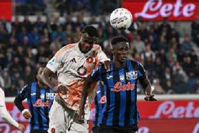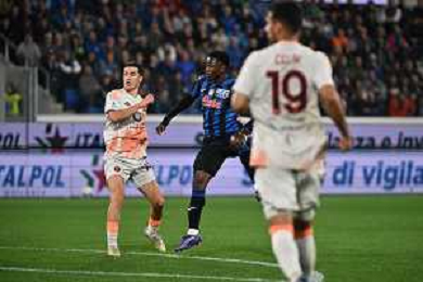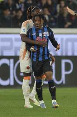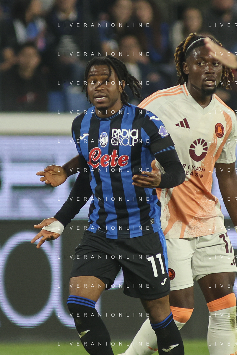 Ademola Lookman of Atalanta BC and Manu Kone’ of AS Roma during Atalanta BC vs AS Roma, 36° Serie A Enilive 2024-25 game at Gewiss stadium in Bergamo (BG), Italy, on May 12, 2025. (Photo by Davide Casentini)- AGENZIA ALDO LIVERANI SAS