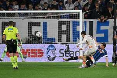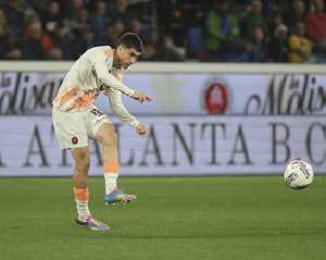 TVRG Atalanta vs Roma nella foto Matias Soule’ (Roma) al tiro Bergamo 12-05-2025 Gewiss Stadium Campionato Serie A Enilive - 36a giornata foto Roberto Garavaglia/Agenzia Aldo Liverani sas