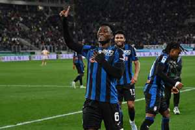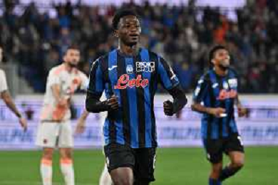 Ademola Lookman of Atalanta BC celebrates with team during Atalanta BC vs AS Roma, 36° Serie A Enilive 2024-25 game at Gewiss stadium in Bergamo (BG), Italy, on May 12, 2025. (Photo by Davide Casentini)- AGENZIA ALDO LIVERANI SAS