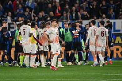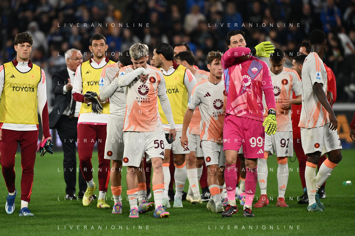 Roma players expresses disappointment during Atalanta BC vs AS Roma, 36° Serie A Enilive 2024-25 game at Gewiss stadium in Bergamo (BG), Italy, on May 12, 2025. (Photo by Davide Casentini)- AGENZIA ALDO LIVERANI SAS