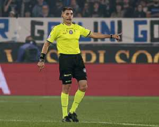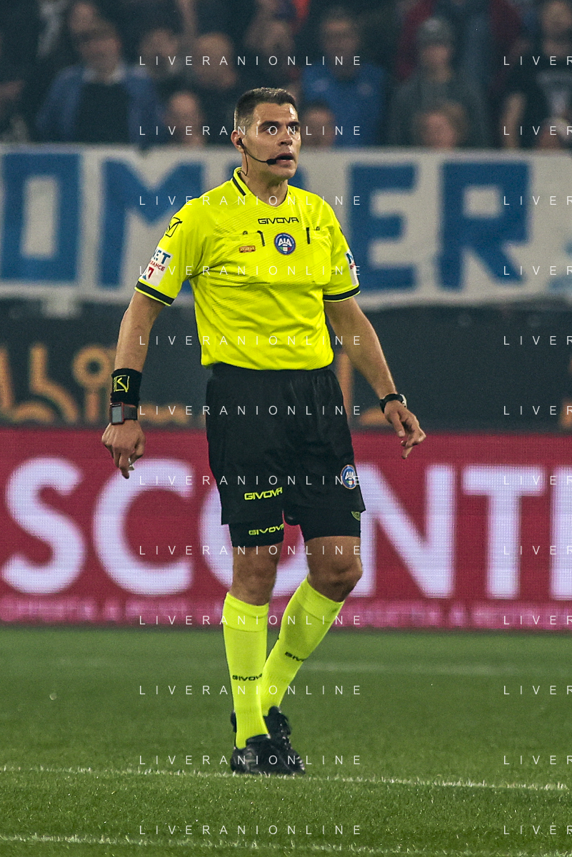 Arbitro - the Referee Simone Sozza during Atalanta BC vs AS Roma, 36° Serie A Enilive 2024-25 game at Gewiss stadium in Bergamo (BG), Italy, on May 12, 2025. (Photo by Davide Casentini)- AGENZIA ALDO LIVERANI SAS