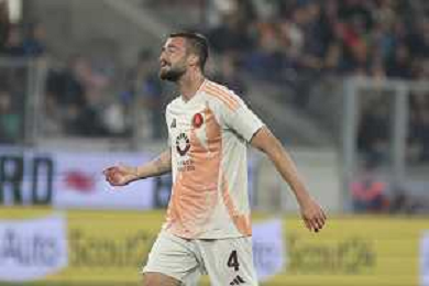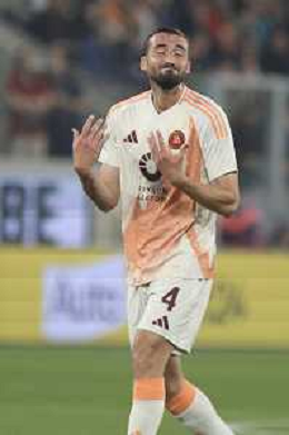 Bryan Cristante of AS Roma gestures during Atalanta BC vs AS Roma, 36° Serie A Enilive 2024-25 game at Gewiss stadium in Bergamo (BG), Italy, on May 12, 2025. (Photo by Davide Casentini)- AGENZIA ALDO LIVERANI SAS