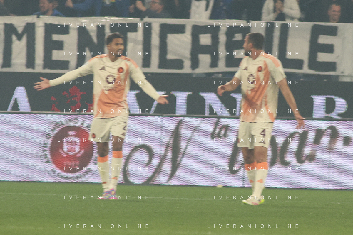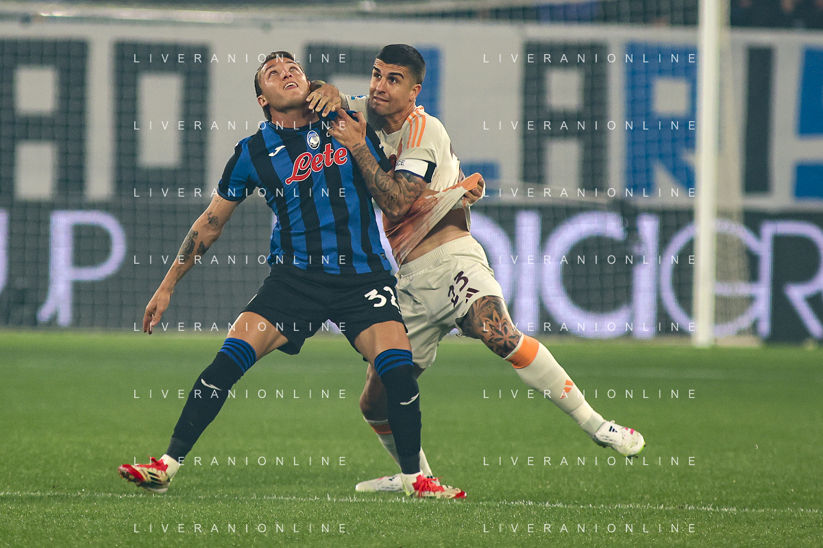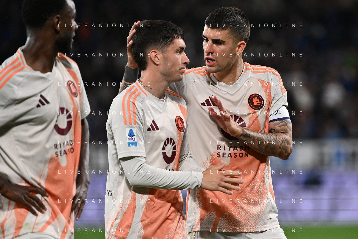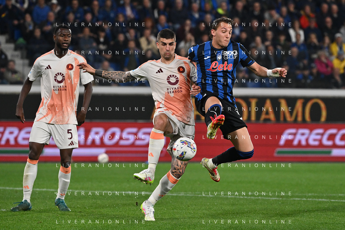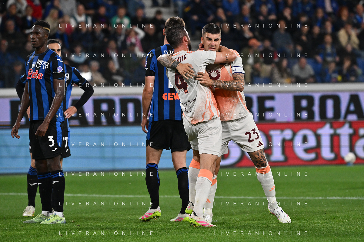 TVRG Atalanta vs Roma nella foto Matias Soule’ (Roma) SX e Gianluca Mancini (Roma) DX Bergamo 12-05-2025 Gewiss Stadium Campionato Serie A Enilive - 36a giornata foto Roberto Garavaglia/Agenzia Aldo Liverani sas