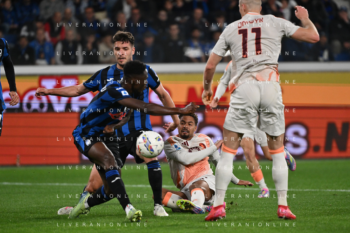 TVRG Atalanta vs Roma nella foto Obite Evan N'Dicka (Roma) e Odilon Kossounou (Atalanta) Bergamo 12-05-2025 Gewiss Stadium Campionato Serie A Enilive - 36a giornata foto Roberto Garavaglia/Agenzia Aldo Liverani sas