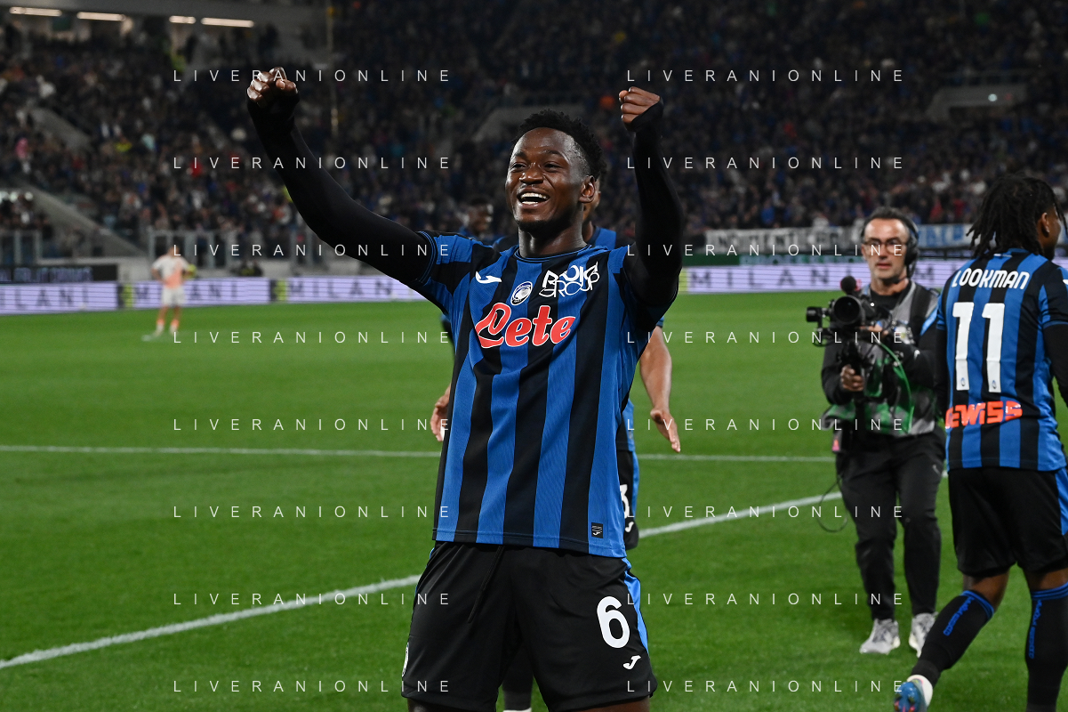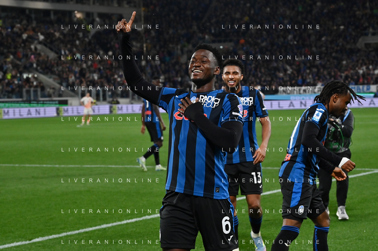 TVRG Atalanta vs Roma nella foto Ibrahim Sulemana (Atalanta) esultanza dopo il gol del 2 a 1 Bergamo 12-05-2025 Gewiss Stadium Campionato Serie A Enilive - 36a giornata foto Roberto Garavaglia/Agenzia Aldo Liverani sas
