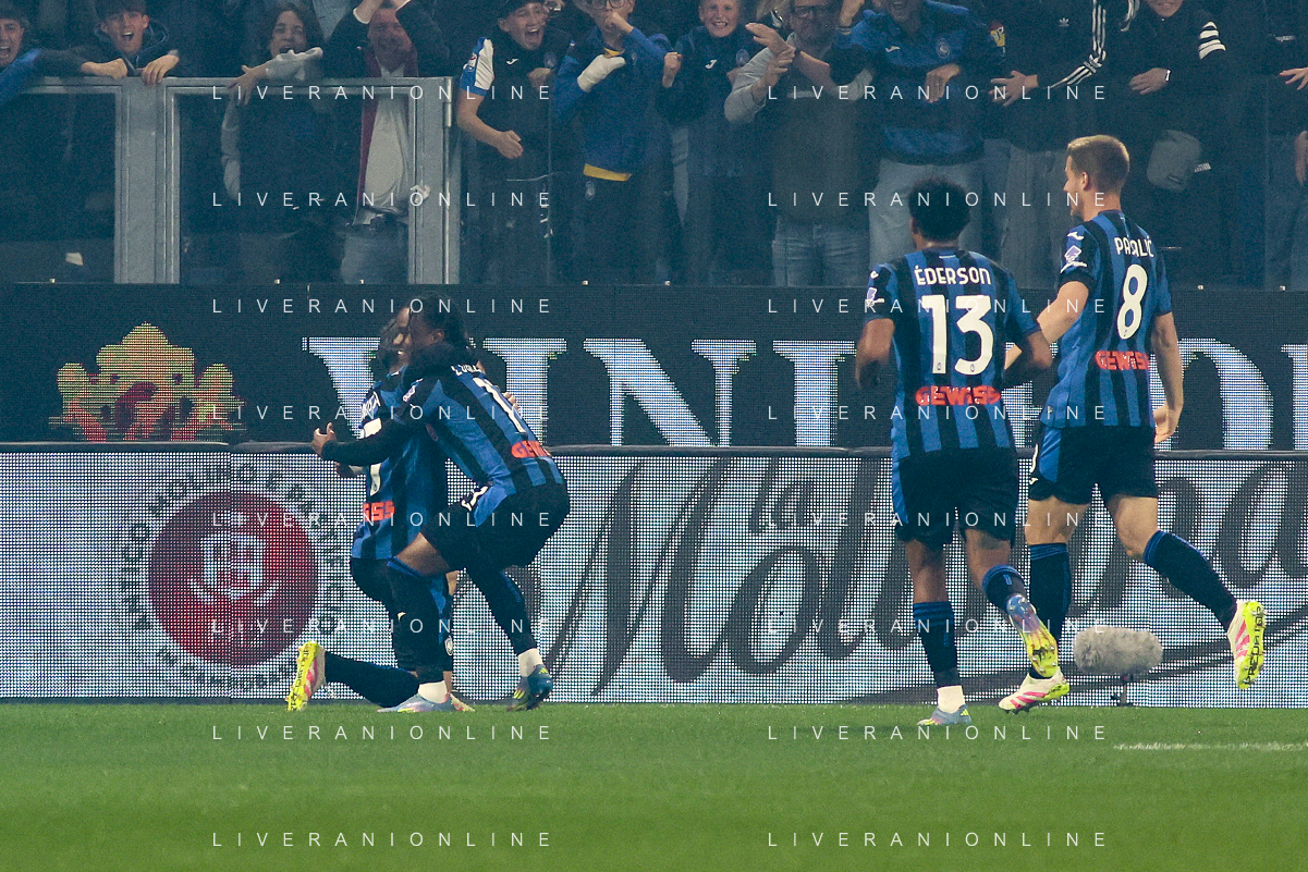 TVRG Atalanta vs Roma nella foto giocatori Atalanta esultanza dopo il gol del 2 a 1 Bergamo 12-05-2025 Gewiss Stadium Campionato Serie A Enilive - 36a giornata foto Roberto Garavaglia/Agenzia Aldo Liverani sas